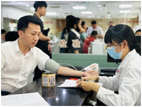 在市中心血站,志愿者們在工作人員的引導(dǎo)下,有序做好信息登記、健康征詢、血壓測量、初篩檢測等工作。隨后,符合獻血條件的8名志愿者紛紛挽起衣袖,用2600CC的熱血筑成一道延續(xù)生命的紅色城墻。